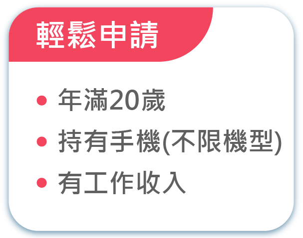 ★ 手機借款本息攤還,核貸額度及利率以申請人條件評分而訂,且利率不超過銀行信用卡循環利率15.95%為基準。